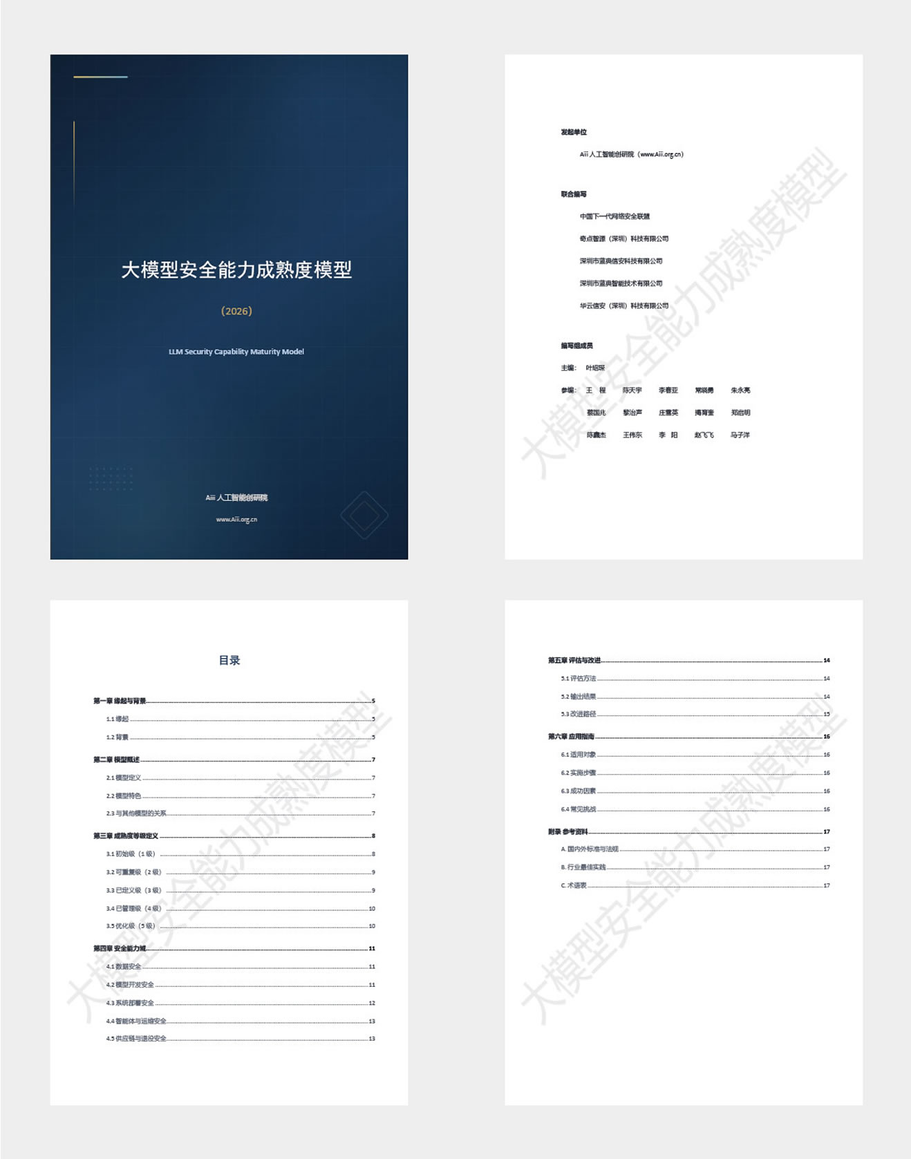 《大模型安全能力成熟度模型(LLMS-CMM)2026版》全文包含六个章节及附录参考资料,由Aiii人工智能创研院及多家网络安全企业联合编制,旨在为组织提供系统化、可量化的大模型安全能力建设框架。